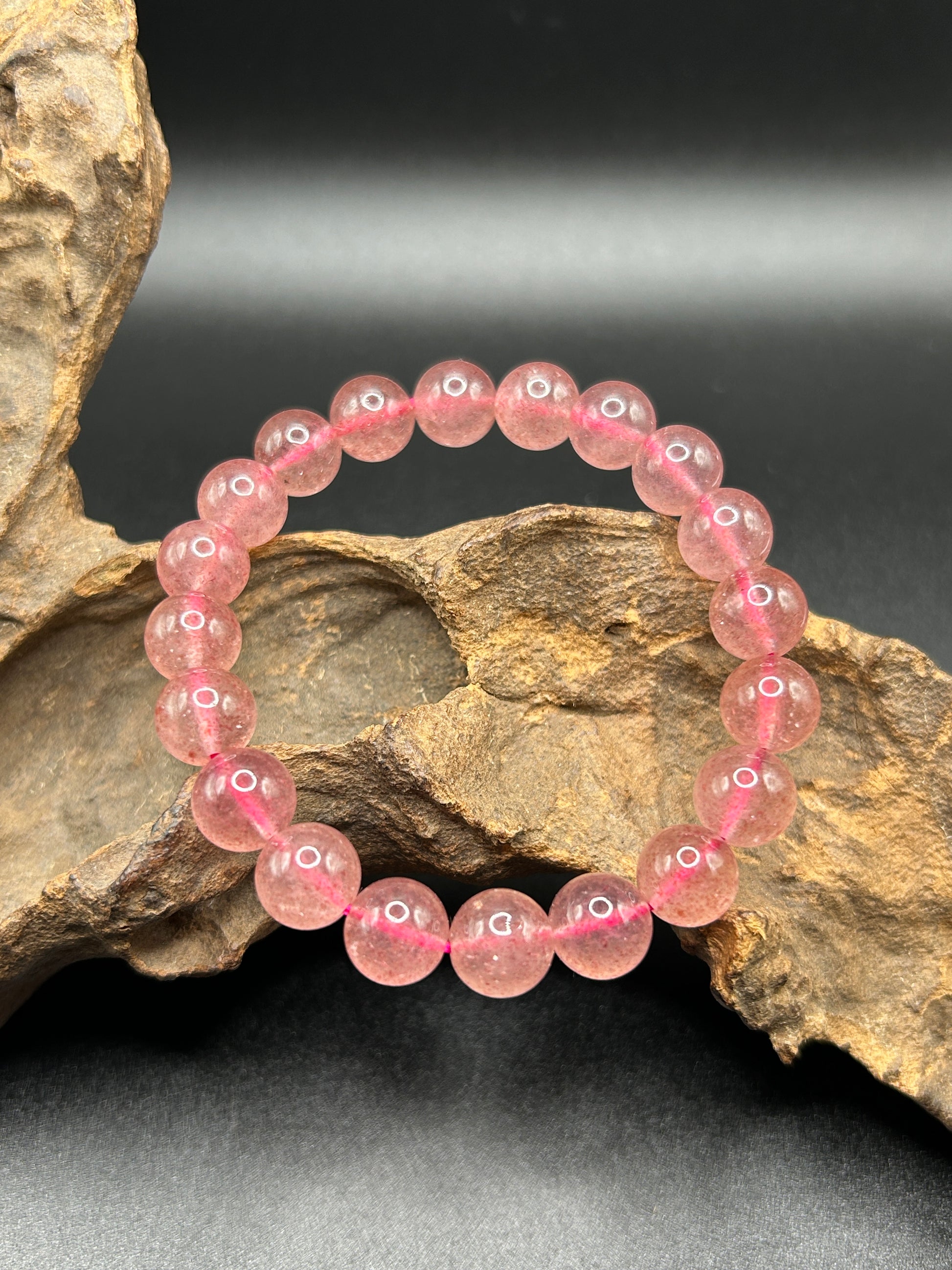 Erdbeerquarz soll dir helfen traurige Emotionen zu lindern. Umfang 16cm. Perlengröße 9,5mm.
