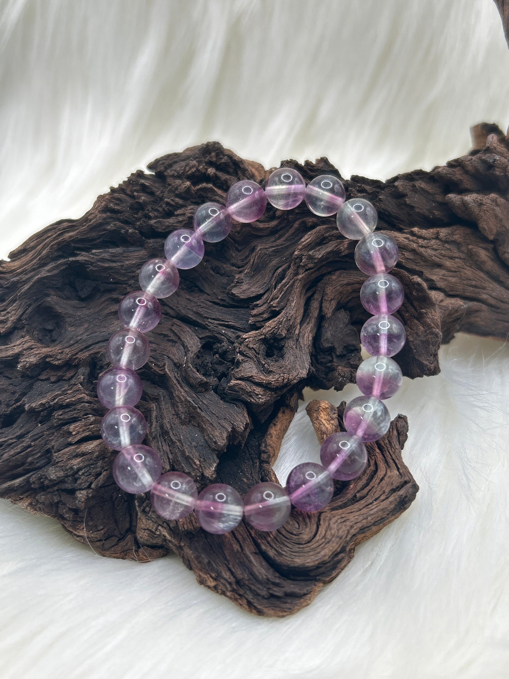 Schönes Fluorit Armband in lila, weiß und hellem Grün. Umfang 16cm. Perlengröße 8,7mm.