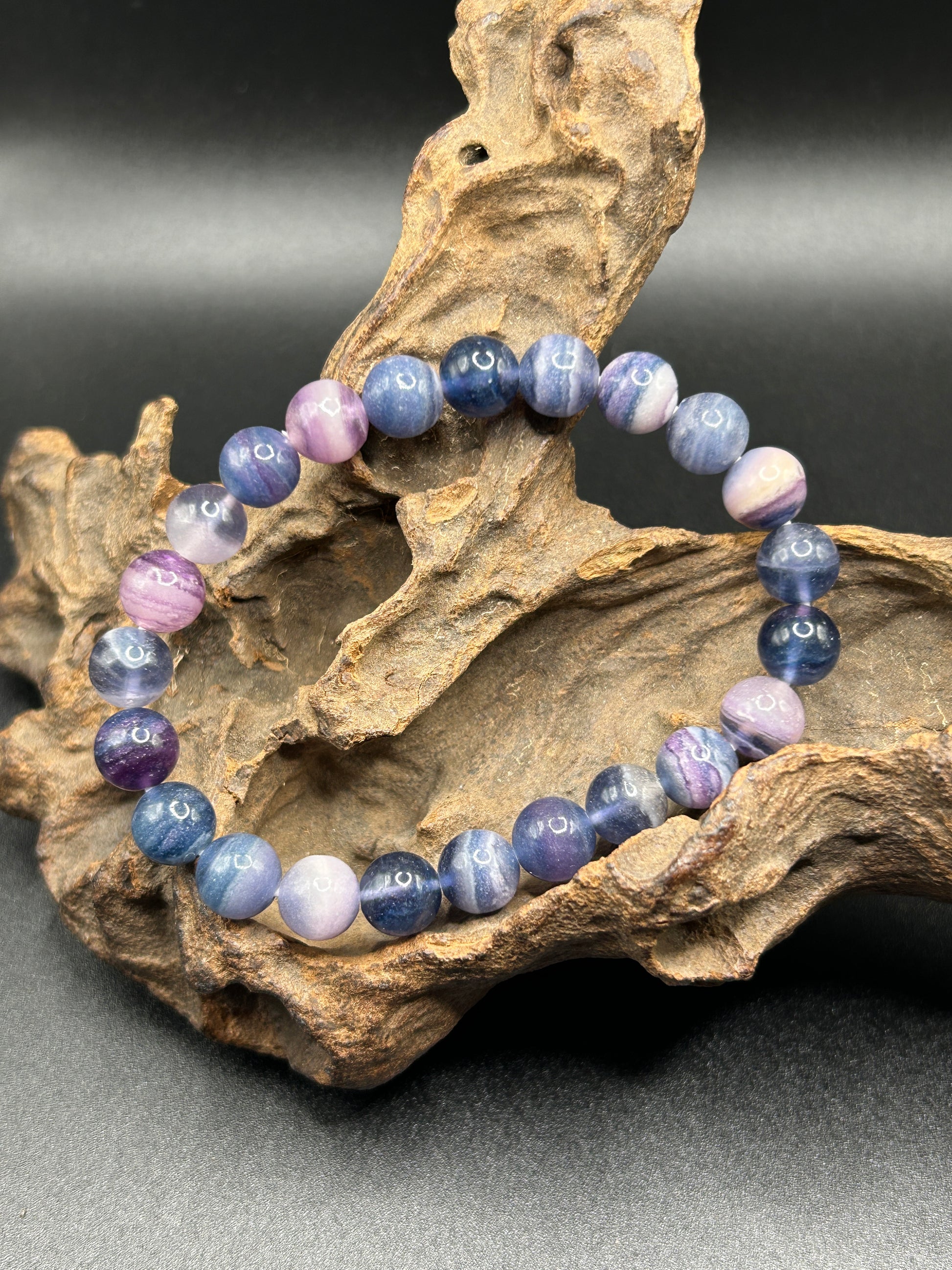 Ein schönes Armband mit milchigem Fluorit. Der Fluorit soll dabei helfen die Konzentration zu steigern. Umfang 16cm. Perlengröße 8,4mm.