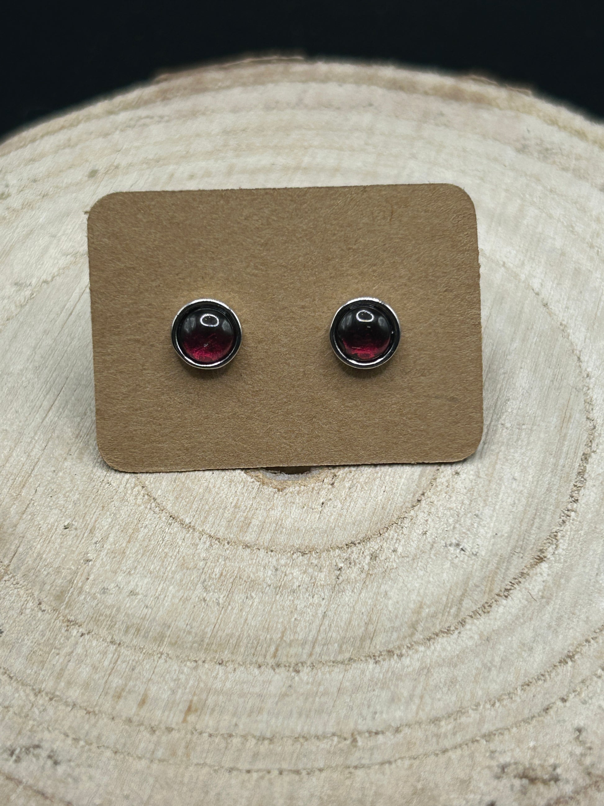 Dezente Granat Ohrstecker. Nur der Stift ist aus 925 Silber. Der Rest ist Kupfer. Granat steht für Mut und Selbstvertrauen.