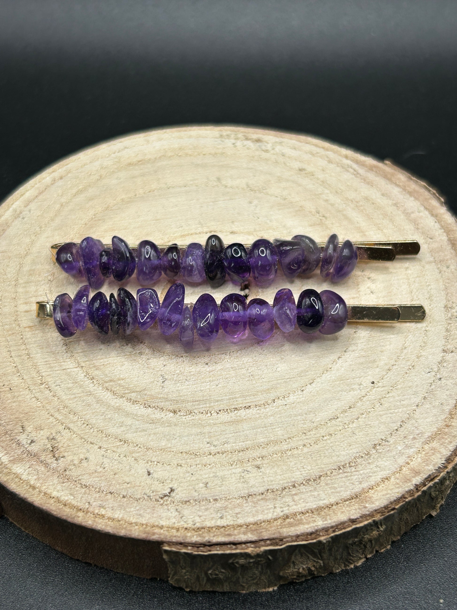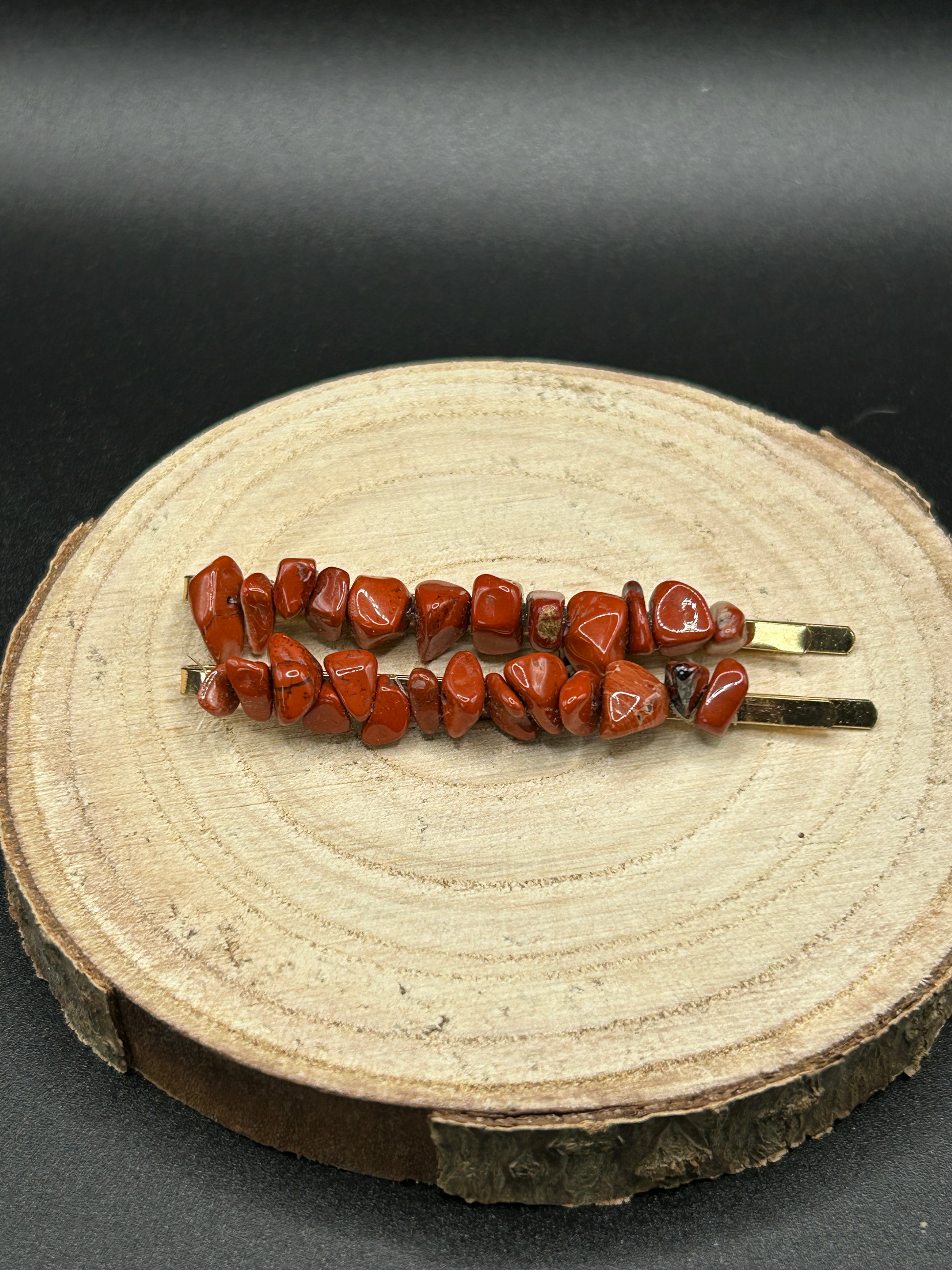 Schöne Haarklammer mit rotem Jaspis und Amethyst.