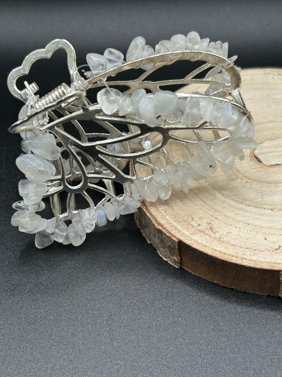 Haarklammer aus Metall mit Mondstein Chips verziert
