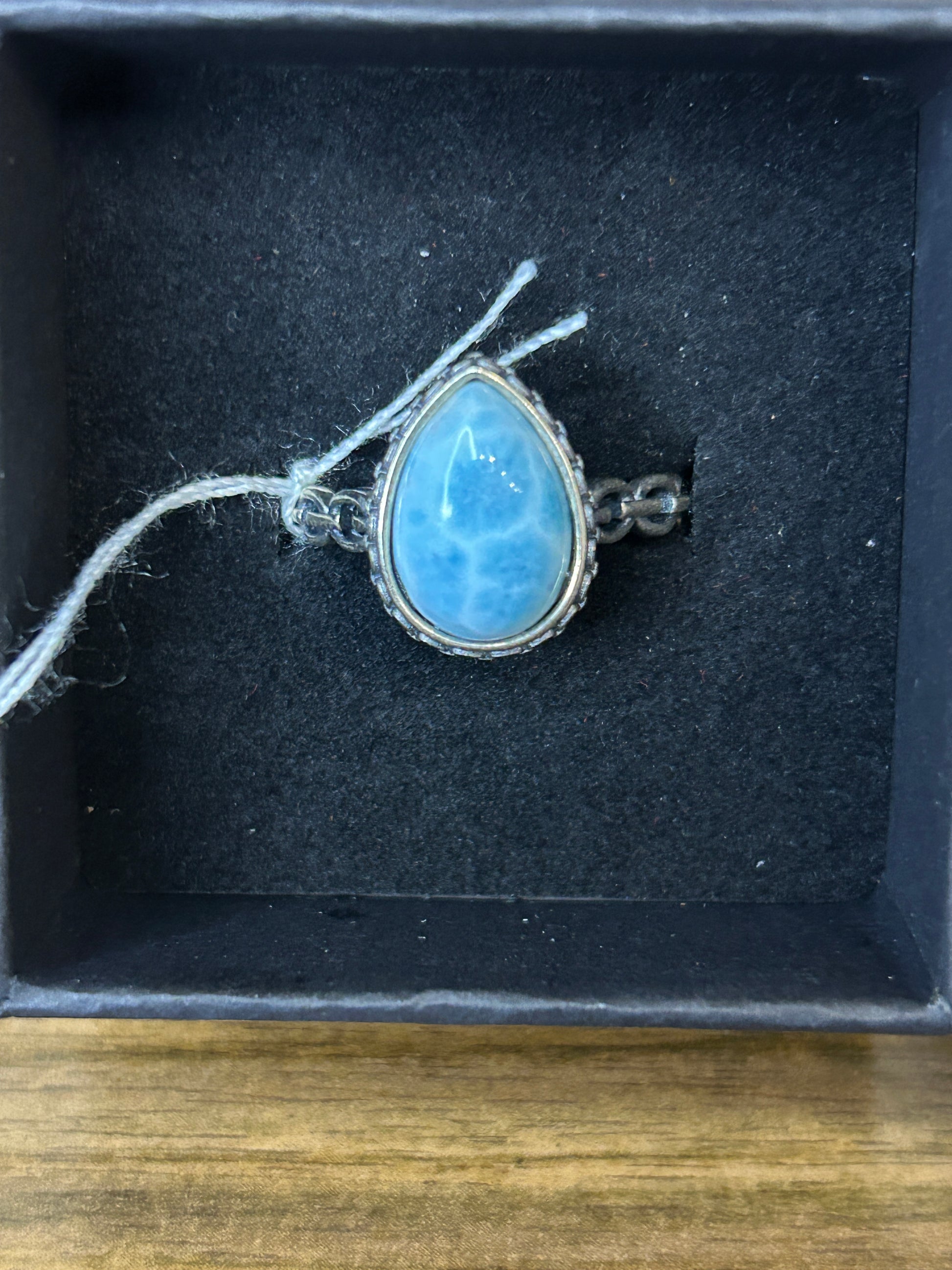 Schöner Tropfenförmiger Larimar Ring. 925 Silber und in der Größe verstellbar.