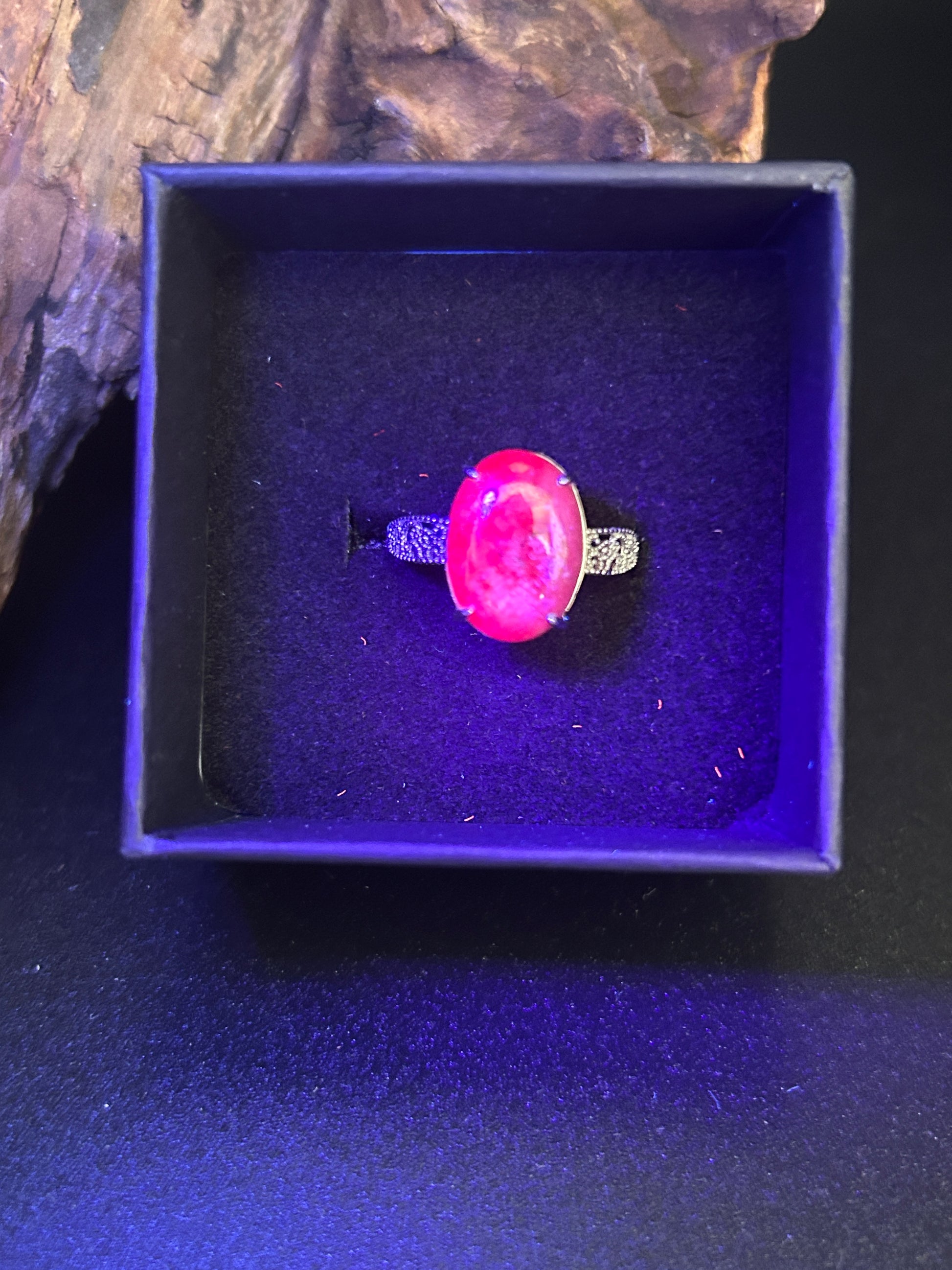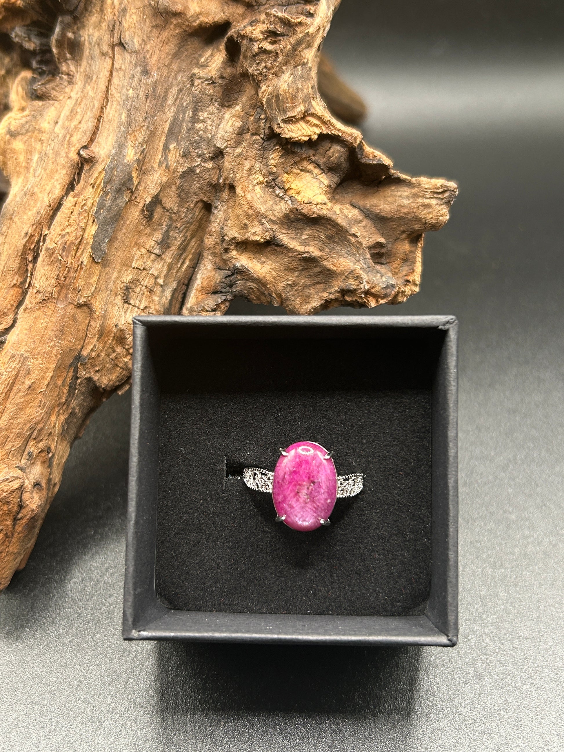 Schöner Rubin Ring in ovaler Optik. Der Ring ist Größen verstellbar und 925 versilbert. Der Rubin ist in der Esoterik einer der Steine mit der stärksten Wirkung. Er wird dem Blut und dem Herz zugeordnet und mit Liebe, Leidenschaft, Energie, Mut und Macht assoziiert.